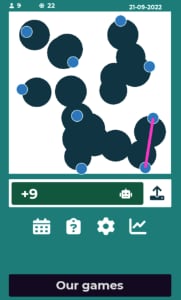 Separate the particles from one another as much as possible. The shortest distance is shown with a line. The higher it is, the better. A positive score means you are above par, which means better than our artificial intelligence. Then try to beat other players as well.